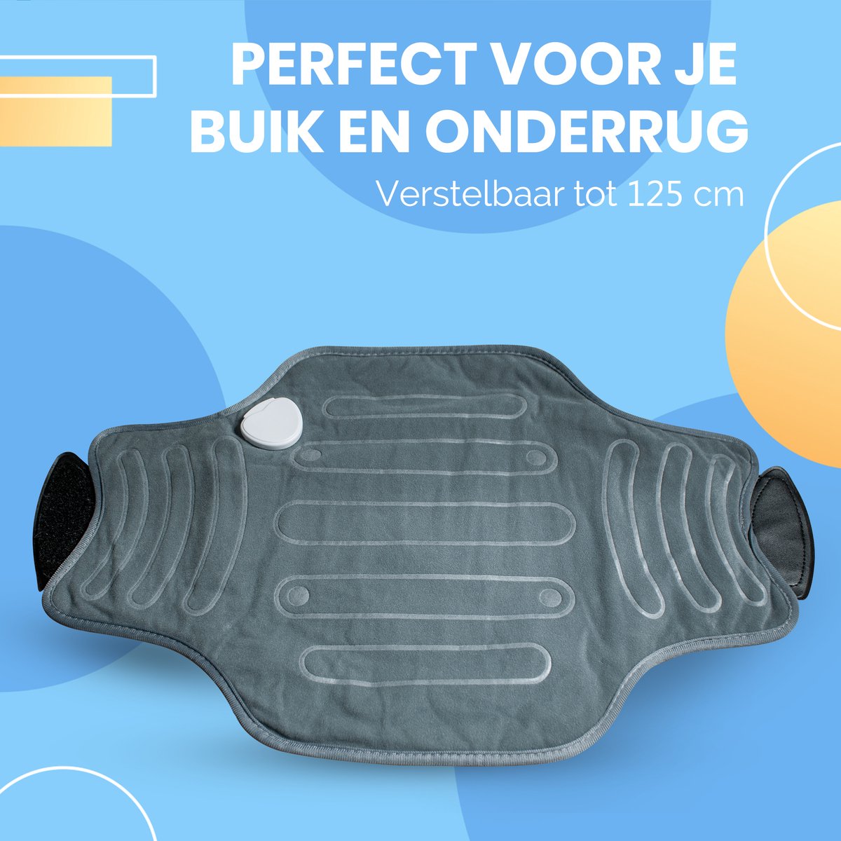 Een warmtekussen voor buik en rug verlicht pijn en spanning met warmtetherapie, terwijl het verstelbaar tot 125 cm zich aanpast aan verschillende lichaamstypes voor maximale comfort.