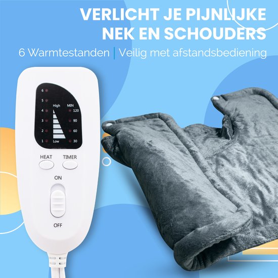 Of u nu last heeft van vervelende hoofdpijn, nekpijn of schouderpijn, ons warmtekussen is de ultieme oplossing voor uw ongemak. Met een royaal formaat van 58x42 cm biedt ons kussen voldoende comfort en ondersteuning om uw pijn te verzachten en uw stress te verminderen. Met zes verschillende warmteniveaus kunt u het kussen aanpassen aan uw specifieke behoeften, terwijl de handige timer zorgt voor de hoogste efficiëntie.